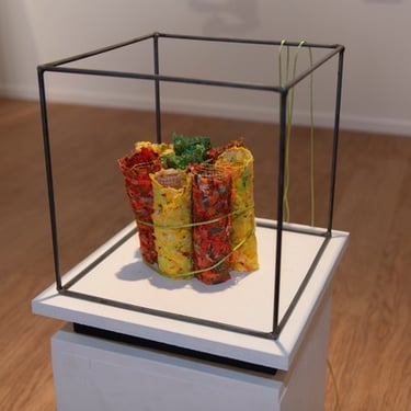 Mijn werk is kleurrijk en ik werk graag met kunststoffen zoals organza. Ik bewerk graag materialen op een manier waarvan het resultaat niet altijd van tevoren vaststaat.