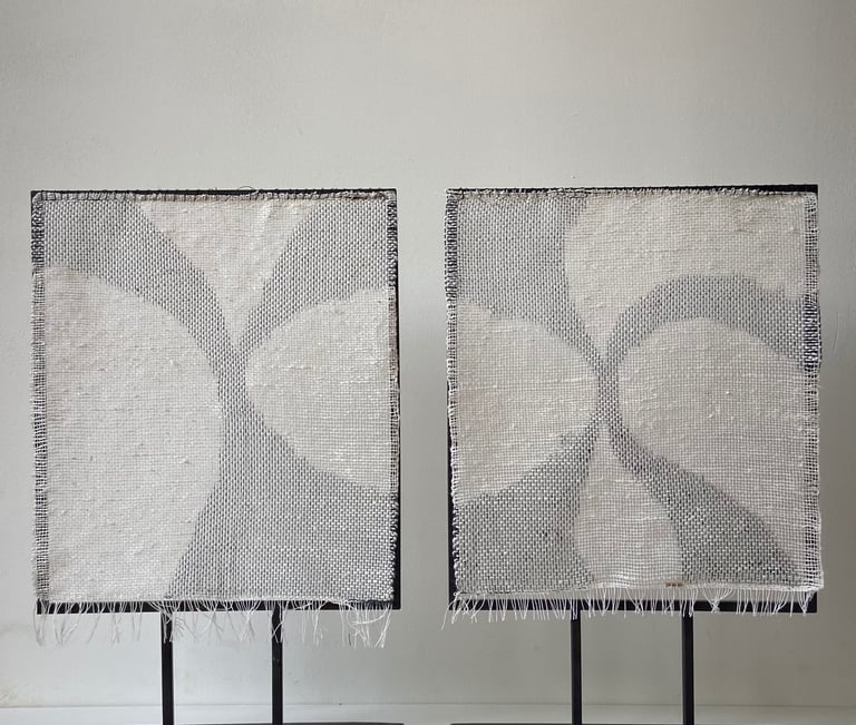 Om mijn ontdekkingstocht voort te zetten, heb ik de Kunstacademie Textiel in Mol gevolgd. Tijdens mijn studie ontwikkelde ik een bijzondere voorkeur voor weven, zowel technisch als abstract. Deze techniek vormt nu de basis voor mijn diverse werken.